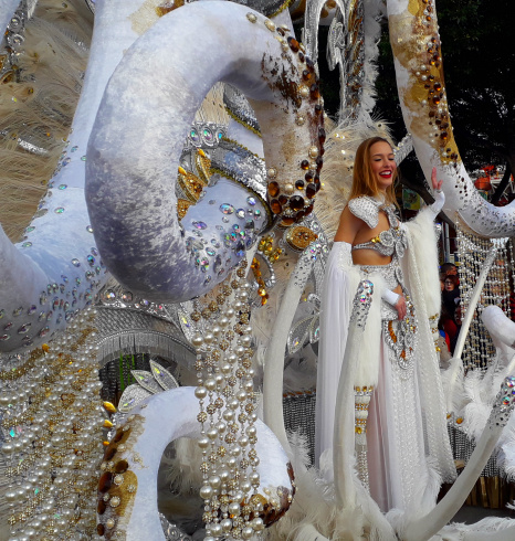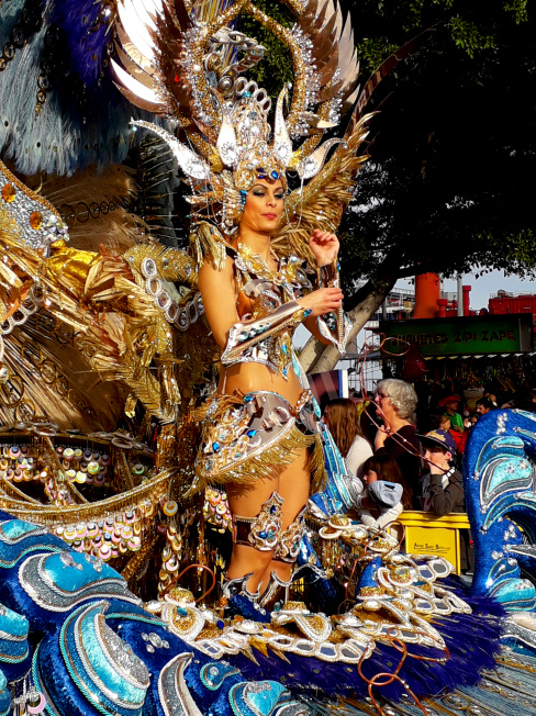 Und natürlich will jeder die Karnevalskönigin sehen. Nach einem besonders harten Auswahlprozess, bei dem alle Kandidatinnen zusammen mit ihrem gigantischen „Kostüm“, der „fantasía“ auftreten müssen, wurde sie in der Woche davor gekrönt.