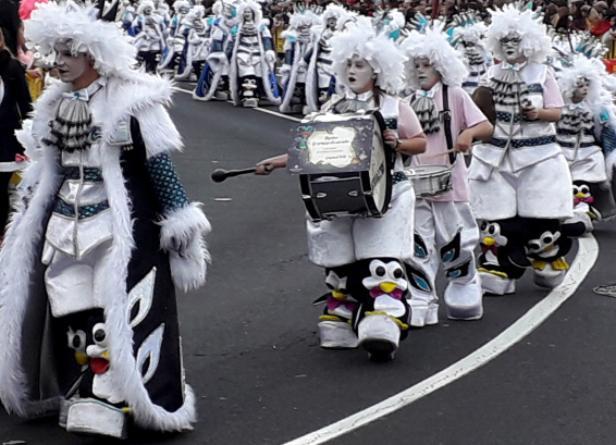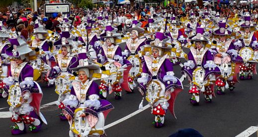 Die „comparsa“ ist die zugehörige Tanztruppe, die zu dieser Musik ihre Show aufführt. Nicht nur während des Umzugs, sondern auch in vielen Veranstaltungen in der Karnevalszeit und bei Wettbewerben mit genau vorgeschriebenem Pflichtprogramm.