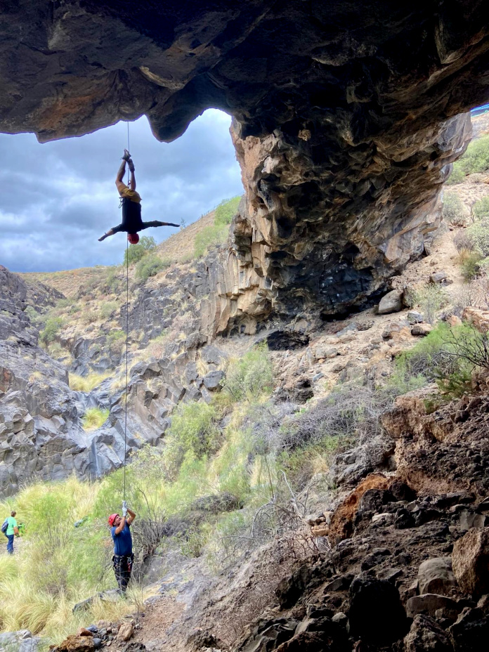 Wenn du Spaß am Klettern hast, musst du unbedingt den Barranco de los Arcos machen: Mit Seil und Haken.