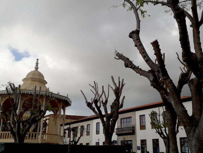 Wieder mussten in La Orotava Baumarbeiten durchgeführt werden, die in einschneidender Weise das Stadtbild verändern. Auf der beliebten, schattigen Plaza de la Constitución haben die Motorsägen am 12. April einen traurigen Anblick hinterlassen.
