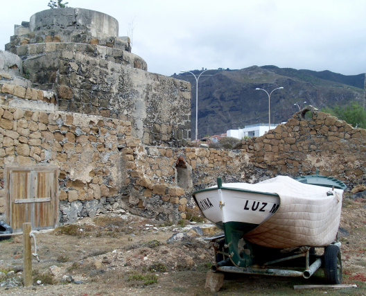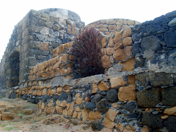 Aus diesen Gründen sind die Kalköfen auch immer in der Nähe eines Hafen gebaut worden. Das handcolorierte Foto aus dem Jahr 1893 zeigt einige – heute nicht mehr erhaltene – Gebäude in Santa Cruz, auf der Ostseite des Barranco de la Alegría, mit denselben Baustrukturen wie in Puerto de la Cruz.