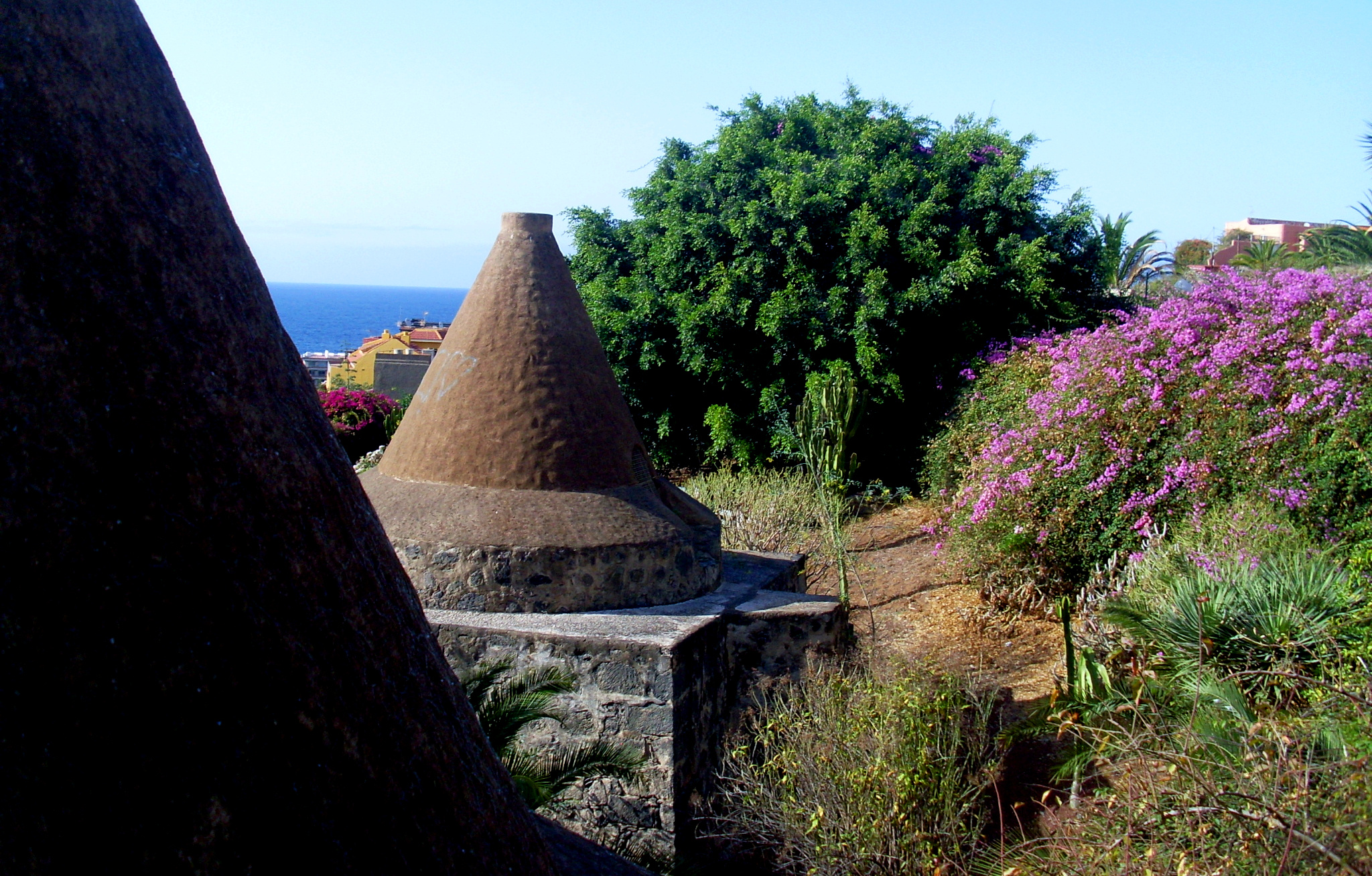 Zwergenhäuschen, umgedrehte Eistüten, Räucherkamine, ein Denkmal für den Teide…? Man wundert sich im Vorbeifahren über die seltsamen Gebäude an der Hauptstraße oberhalb der Altstadt von Puerto de la Cruz. Hier stehen etwas abseits der Straßenkreuzung Las Cabezas vier ehemalige Kalköfen in einem kleinen Garten. Es lohnt sich, dort mal reinzuschauen. Auch an anderen Stellen der Insel sind diese Relikte der Industrietechnik noch zu finden.