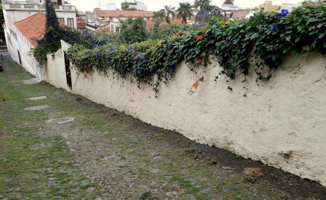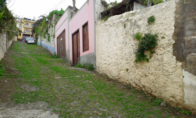 Auf diesem Spaziergang wird man dann auch das dritte Teilstück mit uraltem Pflaster nicht verpassen, die Calle Altavista, mitten im Zentrum von La Orotava. Oberhalb des Rathauses und genau gegenüber des kleinen botanischen Gartens „La Hijuela“, wo noch einige alte Häuser mit schönem Innenhof stehen, beginnt das steile Sträßchen, das nur 140m lang ist. Kaum vorstellbar, dass hier bei einer durchschnittlichen Steigung von über 20% einmal reger Warenverkehr herrschte.