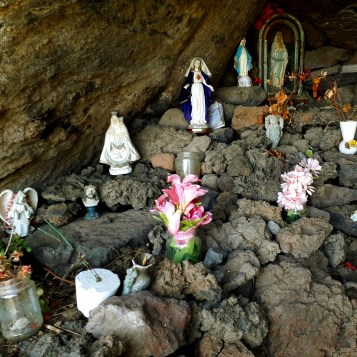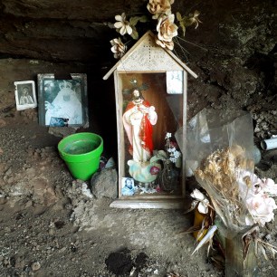 Es lohnt sich, etwa 20m hinter dem Haus zu einer Felsengrotte zu gehen. Unter einem überhängenden Steinblock entdeckt man Heiligenbilder, kleine Statuen der Jungfrau Maria, Plastikblumen und sogar handgeschrieben Zettelchen mit Wünschen, die die Jungfrau vielleicht erfüllt. Es ist eine kleine religiöse Kultstätte, zu der die Dorfbewohner eigens heraufsteigen um hier zu beten und zu hoffen.