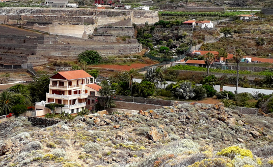 An diesem ruhigen Ort, an dieser weit ins Meer vorspringenden Felszunge, kommt niemand zufällig vorbei. Die „Punta de Juan Centellas“ ist eine ziemlich unbekannte Ecke Teneriffas. Wir müssen schon ein bisschen Mut beweisen, wenn wir die schmale und steile Straße zur Finca hinunter fahren. Manchmal denken wir, es geht nicht mehr weiter, aber auch hinter den letzten Häusern geht das Sträßchen noch ein Stück weiter bergab. Irgendwann endet es an einer Schranke und einem kleinen Parkplatz, dann sind wir am Ziel, an der Finca La Punta. Dort begrüßt uns Edith.
