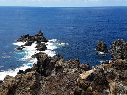 Noch beeindruckender wird die Natur, wenn wir uns Richtung Meer in die wilde Felsenlandschaft wagen. Schwindelfrei und trittsicher müssen wir schon sein, wenn wir hinunter zu den Brandungsbecken klettern wollen. Mit viel Vorsicht kommen wir zu den natürlichen Schwimmbädern, die die Wellen in Jahrtausenden in die Lava gebrochen haben. Hier führen keine Treppen zum Wasser und unten finden wir keine Liegestühle. Aber bei ruhigem Meer ist das Baden im „Charco de la Mareta“ ein unvergessliches Erlebnis.