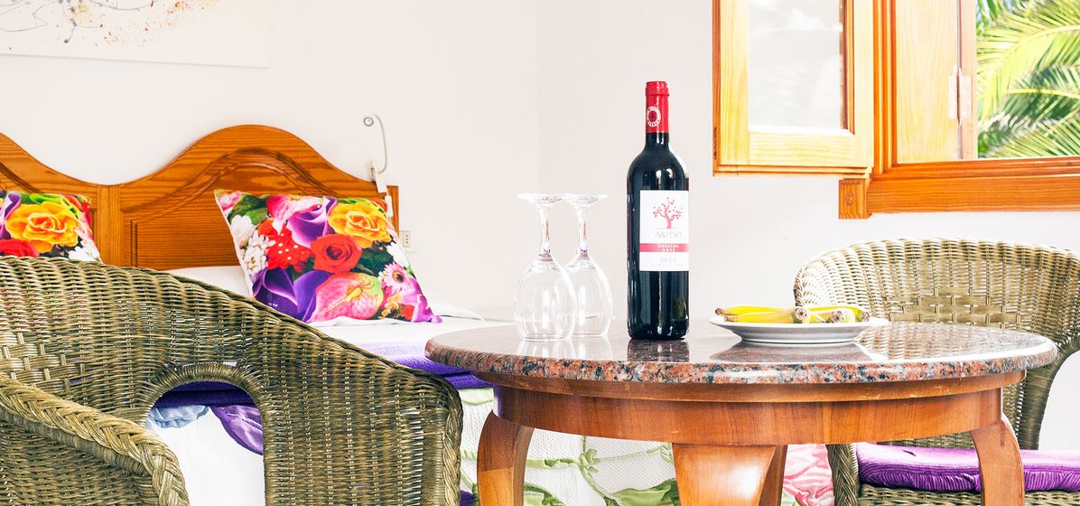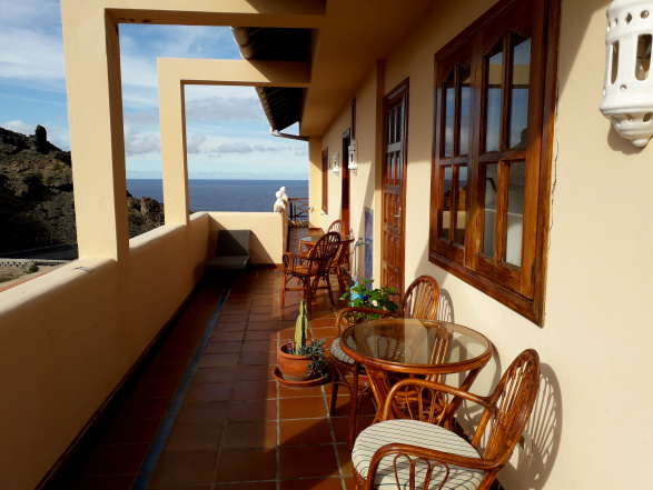 Die Finca La Punta bietet mehrere Ferienapartments in unterschiedlicher Größe, alle mit voll ausgestatteter Küche. Vom Balkon oder der Terrasse blicken wir auf das blaue Meer oder zum schneebedeckten Teide. Die Zimmer sind geschmackvoll und modern eingerichtet und bieten allen Komfort. Natürlich erfreuen wir uns an Ediths Kunstwerken.