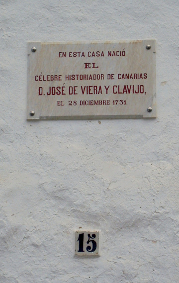 Hier kommt kein Tourist zufällig vorbei. An dem Haus mit der Nummer 15, gegenüber der kahlen Wand des städtischen Stadions, zeigt nur ein einfaches Schild, dass der berühmte Geschichtsschreiber hier am 18. Dezember 1731 zur Welt kam. Gleich nach der Geburt wurde er getauft, was eigentlich nicht üblich war und auf eine problematische Geburt hindeutet. In der Tat war er später Zeit seines Lebens schwach und kränklich. Er selbst versicherte immer wieder, an der geheimnisvollen Schlafkrankheit zu leiden, die auch das Aussterben der Guanchen verursacht haben soll. Trotzdem wurde er über 80 Jahre alt, was in dieser Zeit eine Seltenheit war.