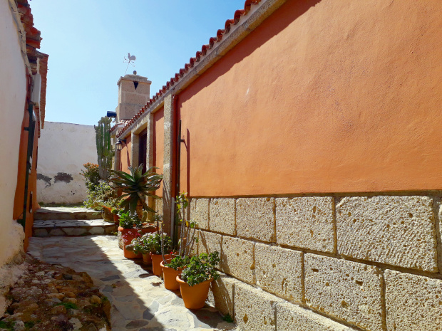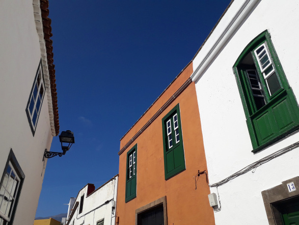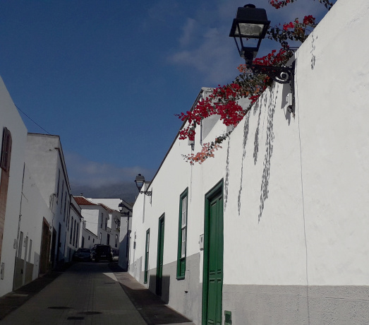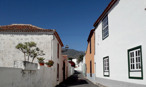 Weiß und schwarz sind die vorherrschenden Farben in den beiden Gassen. Die Fundamente der Häuser wurden aus dem dunklen Basalt gebaut, den man hier piedra chasnera nennt, und blendend weiß glänzen die Fassaden in der grellen Sommersonne. In den Gassen gibt es vor allem eines: Ruhe. Nur selten fährt mal ein Auto hinunter zum Platz vor der kleinen Kirche. Wenn morgens um 8 oder nachmittags um 4 der Bus vorbeikommt, dann steigt oft niemand aus.
