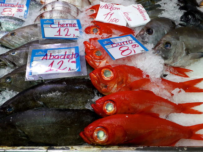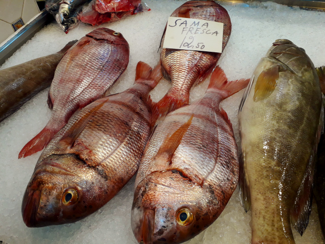 Vieja (Papageienfisch), Mero (Zackenbarsch), Cherne (Wrackbarsch) oder Sama (Meerbrasse), die typischen Fische aus den kanarischen Gewässern sind hier selbstverständlich zu finden. Aber natürlich auch Merluza (Seehecht), Caballa (Makrele), Abadejo (Seelachs), Dorada (Dorade) und Lenguado (Seezunge). Die Auswahl ist groß.