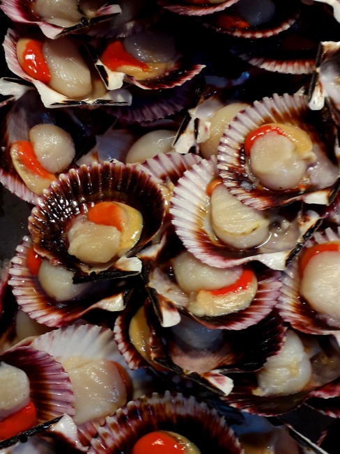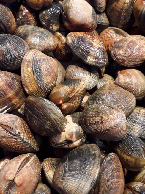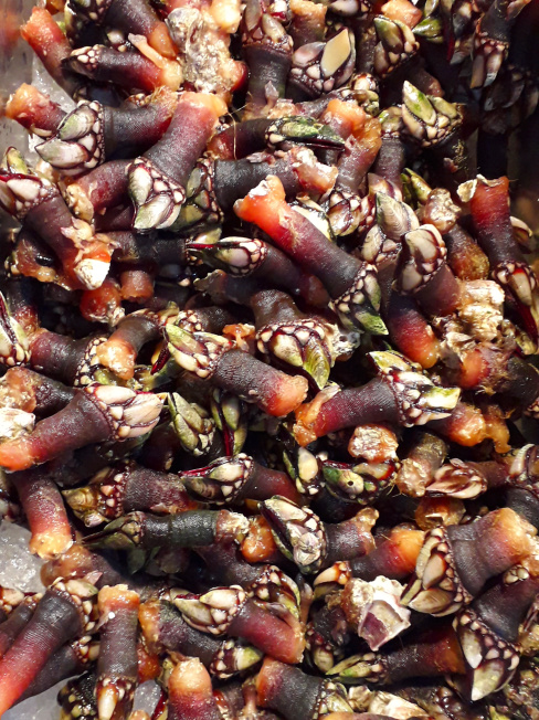 Auch was Muscheln und Krustentiere angeht, findet man hier alles, was es gibt, z.B. die seltsamen Navajas (Schwertmuscheln) und sogar die teuren Percebes (Entenmuscheln), die gar keine Muscheln sind, sondern Krebstiere. Sie werden unter Lebensgefahr von den Brandungsfelsen Galiziens gepflückt.