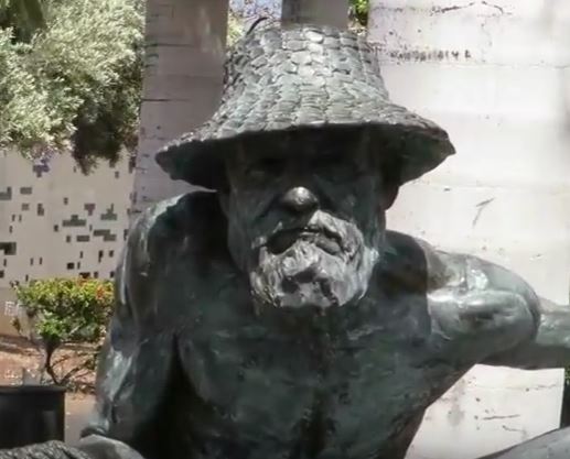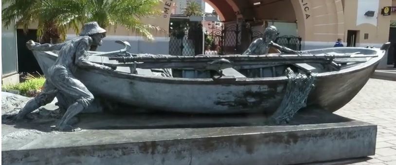 Daneben sieht man das Denkmal für die Fischer, die unter großen Anstrengungen ihr Boot mit dem Fang an Land schieben.