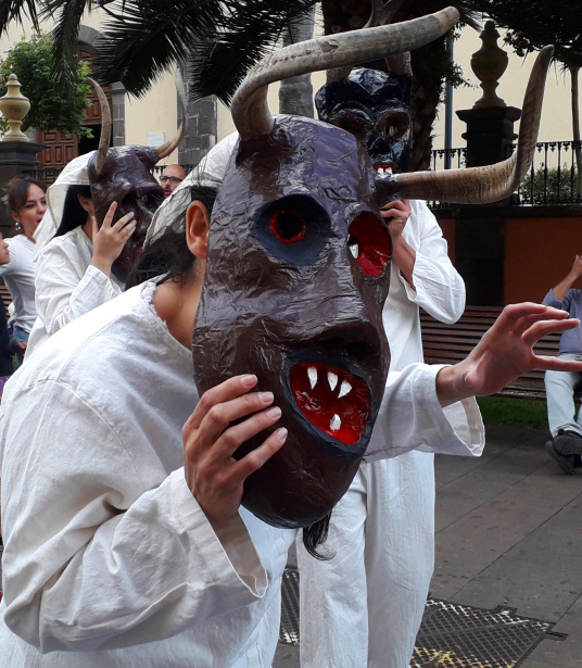 In der Stadt La Laguna gibt es seit einigen Jahren einen Umzug der etwas anderen Art. Hier wird nicht wie sonst an Fronleichnam üblich, eine christliche Statue durch die Stadt getragen. Seltsame Gestalten sind hier unterwegs. Sie erinnern an alte Rituale.