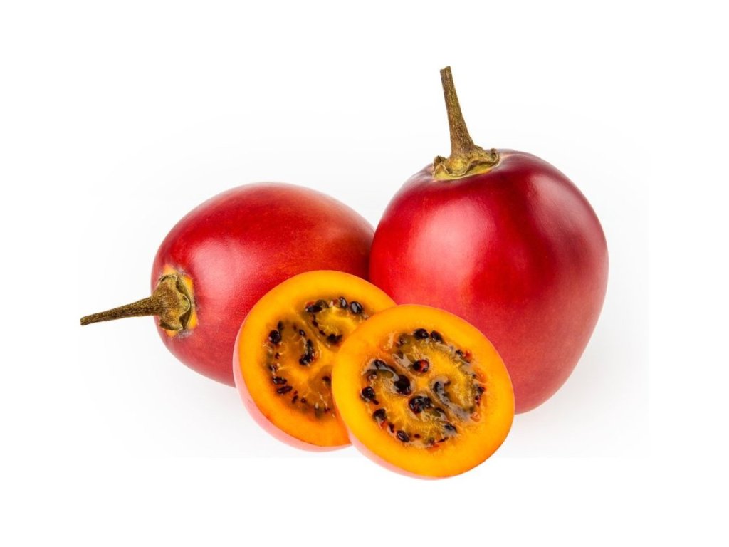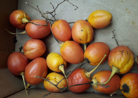 Es gibt zwei Sorten von Baumtomaten. Die ursprüngliche ist die kleine, orangefarbene. Sie ist von länglicher Form und etwas süßer als die rote, welche mehr an eine Tomate erinnert und etwas herber schmeckt.