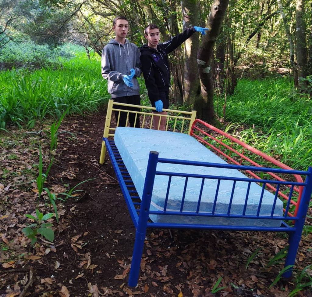 An jenem Samstag, als die Ausgangsbeschränkungen wieder erleichtert wurden, machte sich Dácil und seine Kinder in Begleitung von Journalisten des ‚Diario de Avisos‘ auf der Suche nach Erasmus. Zuvor hatten sie ihm Säcke gebracht und den ganzen Müll, den sie fanden, eingesammelt. Sechs Säcke voller Müll, davon die Hälfte voller Zigarettenkippen. Außerdem reinigten sie den Raum unter Anwendung aller Sicherheitsvorkehrungen, mit Masken und Handschuhen. Sie hatten ihn nicht gefunden, weil er sich oft im Gebüsch versteckt, wenn er Geräusche hört oder Menschen sieht, die er nicht kennt. In der Hütte hing sein Umhang aus La Esperanza, eine Tatsache, die Dácil beunruhigte, weil er ihn normalerweise nie ablegt, obwohl er nach all den Jahren schon so abgenutzt ist. Eines von Dácils Zielen ist es, ihm einen neuen Umhang zu besorgen, der ihn vor der Kälte im Nebelwald schützt.