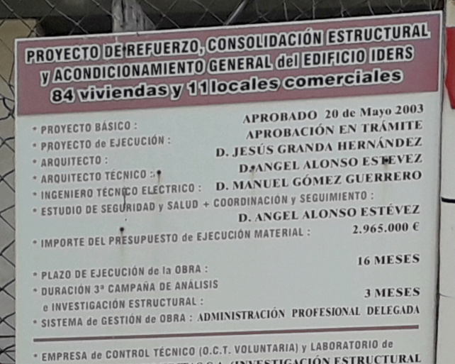 Im Jahr 2006 entschied die Stadt, dass die Bedingungen für die Renovierung des Gebäudes erfüllt sind und erteilte die Genehmigung zur Sanierung. Dem hatte die Eigentümerversammlung, die ca. 73,52% der Eigentümer repräsentiert, zugestimmt und allein für diese Genehmigung 102 000 € bezahlt. Doch diese Genehmigung wurde vor Gericht angefochten von dem Unternehmer Francisco Rodríguez Castro. Er hatte sich seit 2002 dort billig Eigentum verschafft, nachdem einige Besitzer die wirtschaftliche Situation nicht mehr ertragen konnten und zu Schleuderpreisen verkaufen mussten. Er besitzt nun die restlichen 26,48% des Gebäudes und plädiert als Immobilienmakler für einen Neubau. Die Stadt hatte nämlich zuvor das Gebäude zur Ruine erklärt und danach erst die Genehmigung zur Sanierung erteilt. Wegen dieses Verfahrensfehlers hat Rodríguez Castro die Stadt angezeigt und vor Gericht Recht bekommen. Die Stadt musste auch die Gerichtskosten übernehmen und verheddert sich damit noch weiter in diesem Knoten.