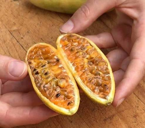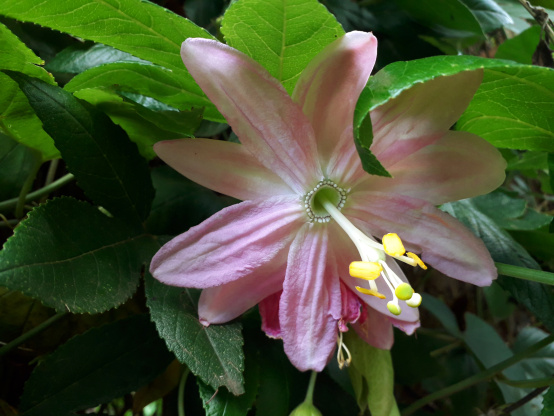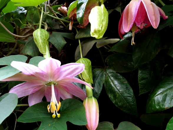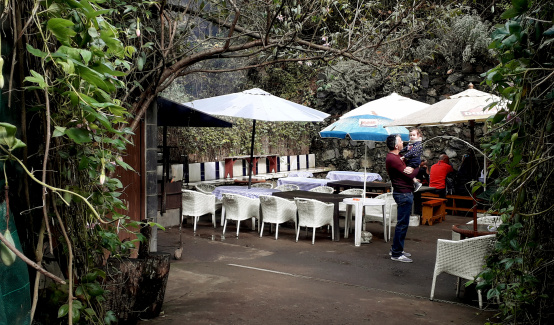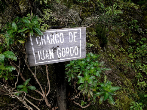 Versteckter geht es kaum. Das Tor ist mit grünen Schlingpflanzen komplett überwuchert, ebenso das Schild am Eingang. Dahinter verbirgt sich ein kleiner Hof mit ein paar Tischen und einem Grill. Einfacher geht es kaum. Unter der Woche hat man Pech, weil der Guachinche nur am Wochenende öffnet. Es gibt Grillfleisch, einen Puchero, Käse und Wein. Rustikaler und originaler geht es kaum. An der dicht bewachsenen Hecke entdeckt man blau blühende Ranken und die seltene Curuba, eine Passionsblume (passiflora tarminiana) mit traumhaften Blüten, sie heißt auch Banenenmaracuja. Ihre länglichen Früchte sind essbar und sehr vitaminreich.
