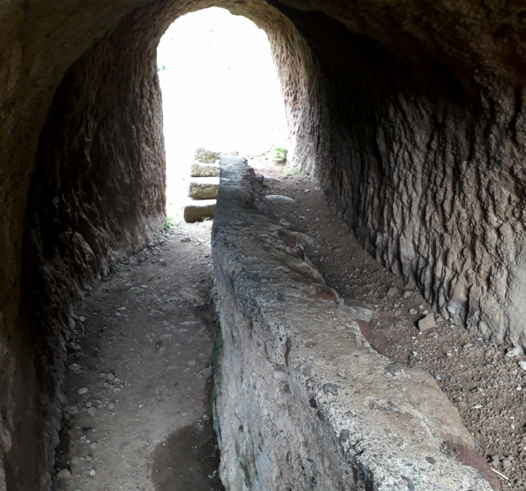 Nach gesamt 350m kommt man längs einer Mauer zum längsten der Tunnels, aber er ist bequem und auch ohne Taschenlampe zu gehen.