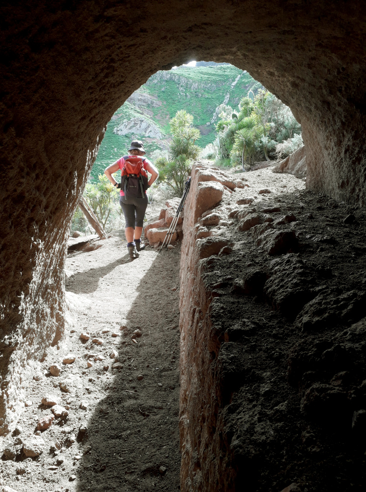 Im Anaga-Gebirge gibt es meist nur zwei Richtungen: rauf oder runter. Dort ist es steil und schroff, und viele Wanderungen sind anstrengend. Diese variable Tour, die einen bequemen Weg auf einem Kanal beinhaltet, kann nach Belieben verkürzt oder erweitert werden. Das sensationelle Panorama auf der Südseite des Hauptkamms ist immer dabei.