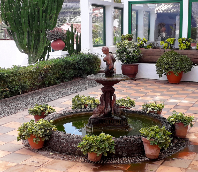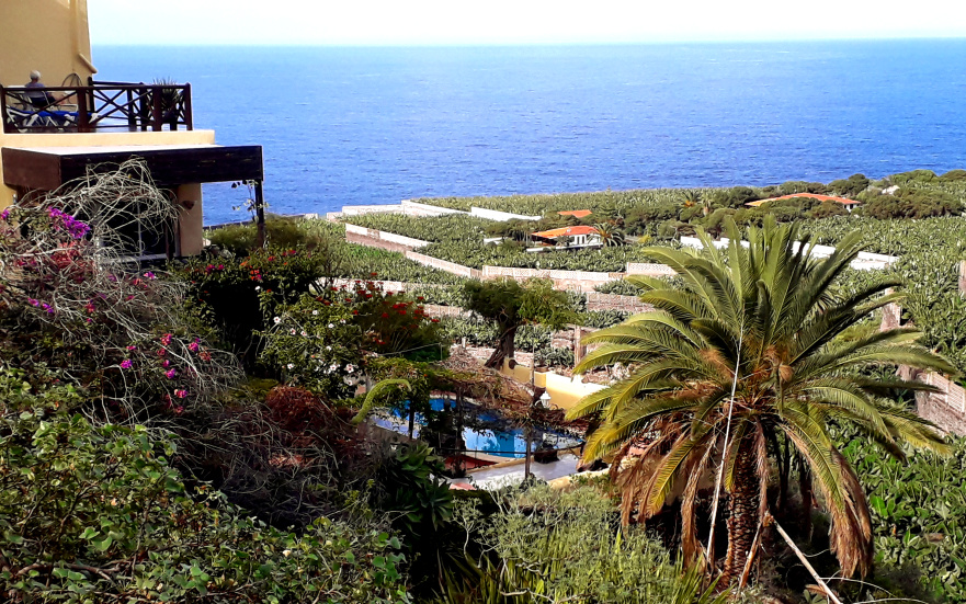 Durch das Bananenland selbst kann man nicht wandern, denn das gesamte Gelände ist in Privatbesitz und gehört zu den dortigen Hotelanlagen. Sowohl das Hotel Rural El Patio als auch die Casa Rural Malpais 13 sind alte Haciendas der Großgrundbesitzer, die zu traumhaft schönen Unterkünften umgebaut wurden. Neben den Haupthäusern gibt es mehrere Bungalows, die verstreut in den Bananenplantagen liegen. Beide Hotels haben wunderschöne Innenhöfe, lauschige Terrassen mit schönen Ausblicken, Blumengärten und Zimmer und Aufenthaltsräume im traditionellen Landhausstil, aber mit allem Komfort. Und ringsherum das grüne Bananenland. Ein perfekter Ort für stille, erholsame Tage.
