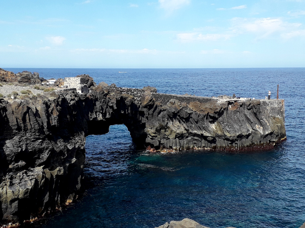 Ganz unten an der Küste gibt es eine alte Anlegestelle auf einer Halbinsel und darunter ein natürliches Felsentor, durch das die Wellen rauschen. Dort befand sich früher einmal eine Verladestation für Bananen. Der Weg zur Anlegestelle ist allerdings auch ein Privatweg.