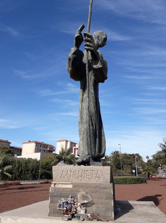 Der brasilianische Philologe Celso Ferreira da Cunha hatte Ende der 1950er Jahre die Idee, der Heimatstadt von San José de Anchieta ein Denkmal zu schenken. Sie sollte ein symbolisches Zeugnis der Dankbarkeit sein und wurde von dem Künstler Bruno Giorgi verwirklicht. Die Bronzefigur ist mit 5 m Höhe eine der größten Statuen auf den Kanarischen Inseln und wurde am 27. November 1960 aufgestellt.