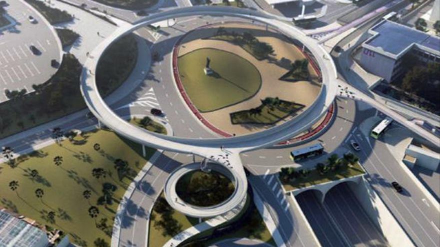 Für Fußgänger und Radfahrer wird es eine geniale Lösung geben. Schon vor vielen Jahren hatten Carlos Alonso und Ricardo Melchior, die ehemaligen Inselpräsidenten, eine Idee, die bestechend klang und ein Vorbild in Singapur hat. Dort gibt es die kreisförmige Lujiazui-Brücke, die eine wichtig und verkehrsreiche Kreuzung überquert.