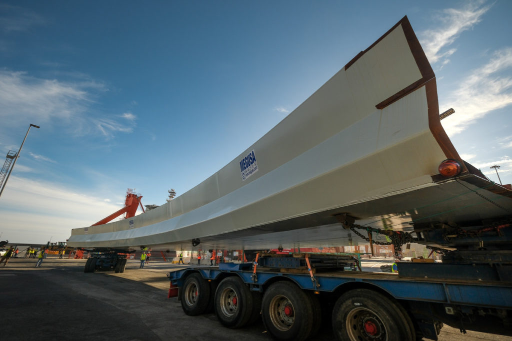 Das erste Modul der gewaltigen Fußgängerbrücke ist im April 2024 aus Sevilla angekommen: 40 m lang, 8 m breit und 50 Tonnen schwer. Im größten Spezialtransport, der jemals auf der Insel durchgeführt wurde, kam das Bauteil nach La Laguna, 10 weitere folgten. Die Einweihung der Brücke ist nun für Anfang 2025 vorgesehen.