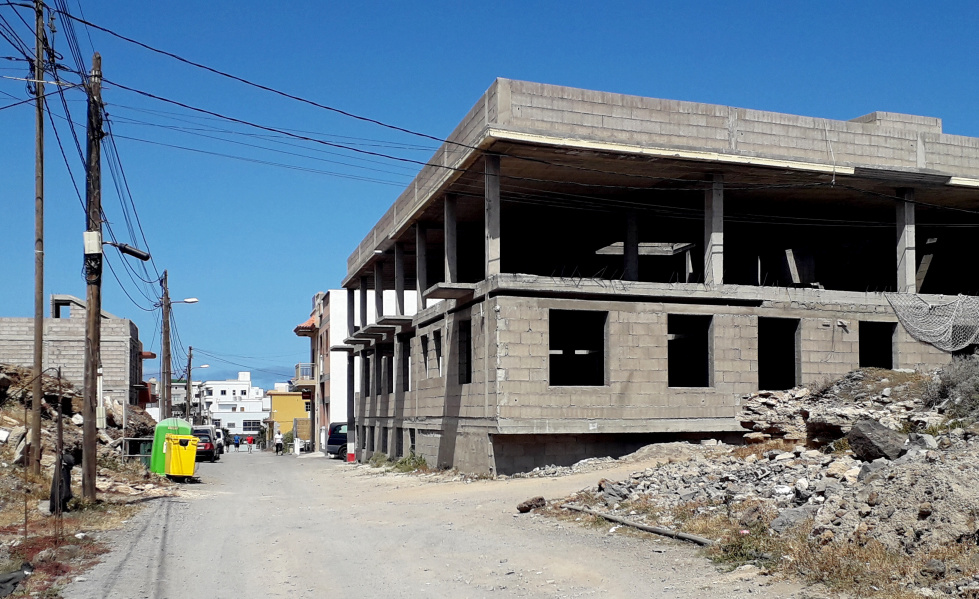 Las Eras ist ein zweigeteiltes Dorf. Schon vor der spanischen Eroberung verlief die Grenze zweier Guanchen-Provinzen durch den Barranco de la Linde („linde“ = Grenze), im 17. Jahrhundert war dieser die Grenze zwischen den Gemeinden Güímar und Vilaflor. Heute gehört der nördliche und größere Teil zum Municipio von Fasnia, dort gibt es wenigstens noch asphaltierte Straßen und Bürgersteige. Auf der anderen Seite der „Grenze“ findet man drei parallele Wege zwischen den einzeln stehenden Häusern, steinig und staubig, mit vielen Baulücken oder halb fertigen Wohnhäusern dazwischen. Hier ist der „Wilde Osten“ Teneriffas. Es ist das abgelegenste Dorf im Municipio von Arico, und da Arico nicht gerade eine reiche Gemeinde ist, bleibt Las Eras de Arico ein armseliger Flecken mit vielleicht den billigsten Baugrundstücken der Insel. Doch wer will wirklich hier wohnen?