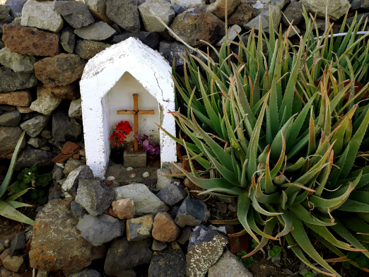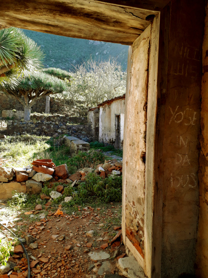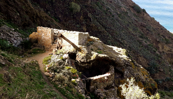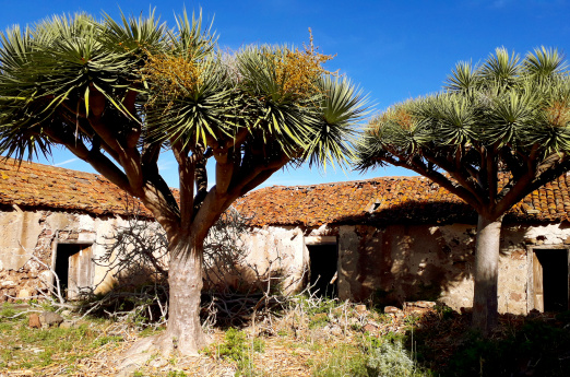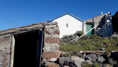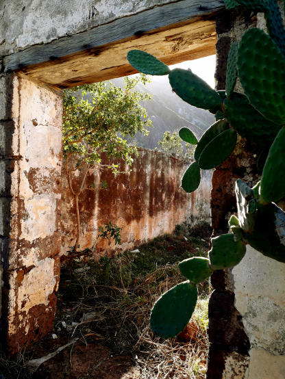 Man kann aber in und zwischen den zerfallenen Gebäuden gefahrlos auf Entdeckungstour gehen. Wer mag, kann auch zu den Häusern hinaufsteigen, die etwas oberhalb der Hacienda zu erkennen sind. Dort oben beginnt auch ein steiler Aufstieg zur Montaña Tafada mit der Möglichkeit, die Wanderung bis nach Chamorga fortzusetzen.