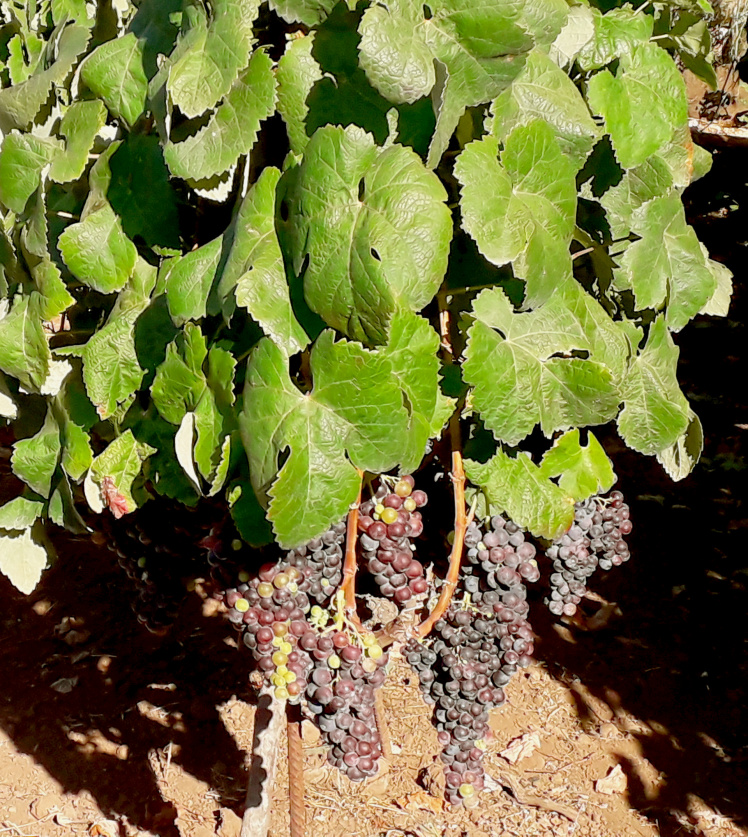 Auf den Straßen zwischen den Weinbergen kann man eine kleine Runde laufen, die aber etwas steiler aufwärts geht, etwa 110 Höhenmeter. Am Mini-Kreisverkehr geht man links und sofort wieder rechts und auf dem schmalen Sträßchen geradewegs bergauf. Es geht zunächst zwischen den Weinfeldern durch, weiter oben stehen große Kastanienbäume, die auch mal Schatten für eine Verschnaufpause bieten. Oben durchquert man eine kleine Häusergruppe und trifft auf die etwas breitere Straße Camino Tabares. Sie geht steil abwärts, unten triff man auf die Joggingstrecke, auf der man zurück nach Los Nateros kommt.