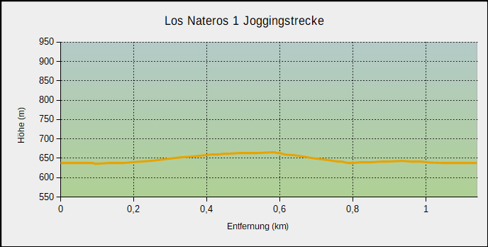 Die Joggingstrecke (1,1 km, tiefster Punkt 636m, höchster Punkt 666m)