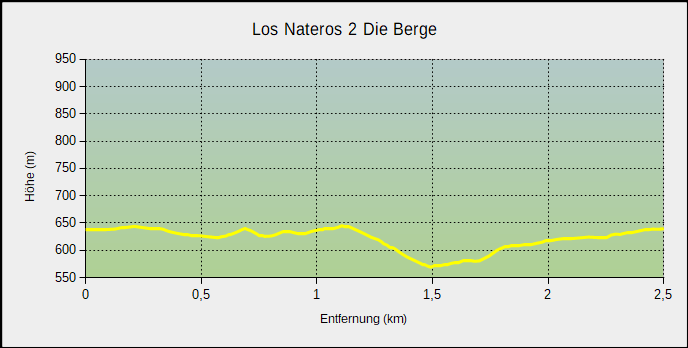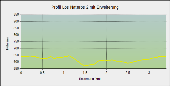 Die Berge, mit Erweiterung (3,4 km, tiefster Punkt 570m, höchster Punkt 645m)