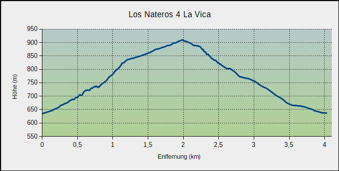 Ganz hinauf (4,1 km, tiefster Punkt 636m, höchster Punkt 910m)