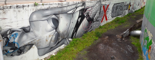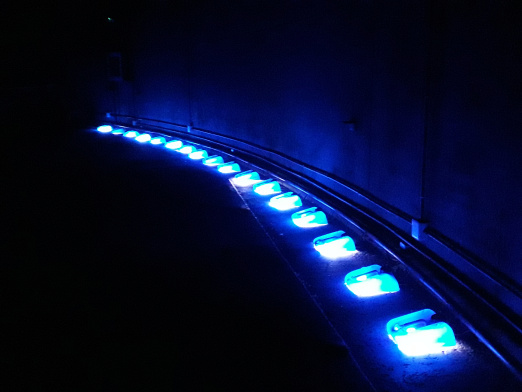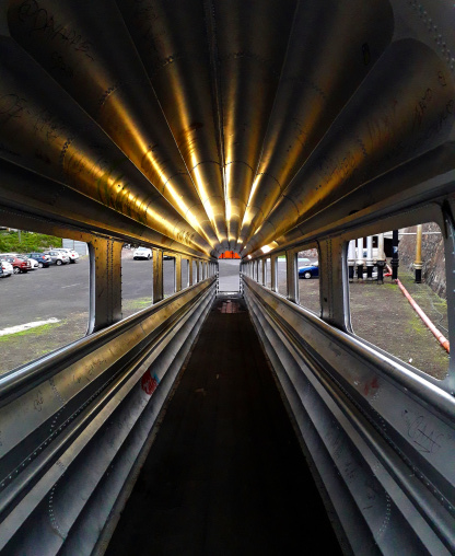 Vor dem Tank liegt ein ehemaliger „Finger“, eine Fußgängerbrücke, die einst im Hafen von Santa Cruz verwendet wurde. Der Zugang ins Innere des Tanks erfolgt durch eine riesige rostige Schwingtüre. Danach führt eine gekurvte Rampe ins Innere des Objekts. Drinnen ist es fast stockdunkel, bis auf ein paar futuristische Lampen aus blauen Ölkanistern.
