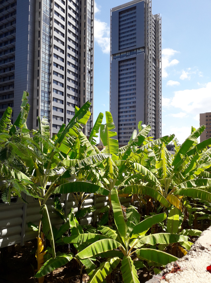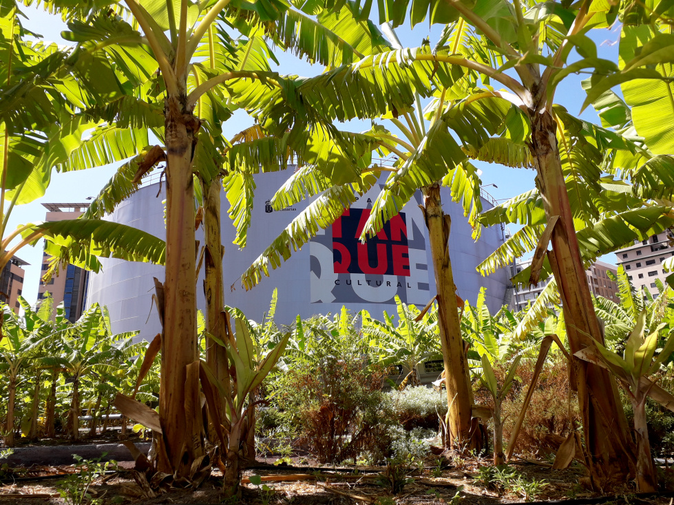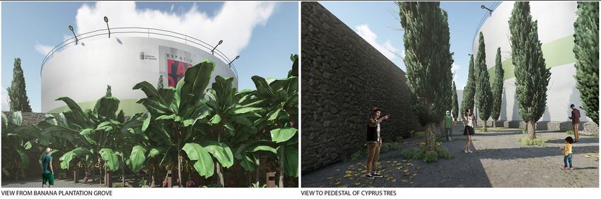 So viel zu dieser unklaren Geschichte aus einer unklaren Vergangenheit. Für die Zukunft war Großartiges geplant. 2018 gewann ein Entwurf des Architekten Fernando Menis in Neu-Delhi einen „Global Architecture and Design Award“. El Tanque Botanical Garden: Das Gelände rund um den Tank sollte mit 700 Bananenstauden in einen Park verwandelt werden, der an die ursprüngliche, landwirtschaftlich geprägte Nutzung dieses Gebiets erinnern soll. Entlang der Mauern sollten Zypressen eine immergrüne, 20m hohe Umrandung bilden. Ein solcher Erholungspark, verbunden mit dem kulturellen Angebot der Veranstaltungen im Tank, sollte die damals recht traurig aussehende Umgebung bedeutend aufwerten. Ist es ein Zufall, dass ausgerechnet die Ehefrau dieses Architekten, Dulce Xerach Pérez, die Vorsitzende de Vereins „Freunde von El Tanque“ ist?