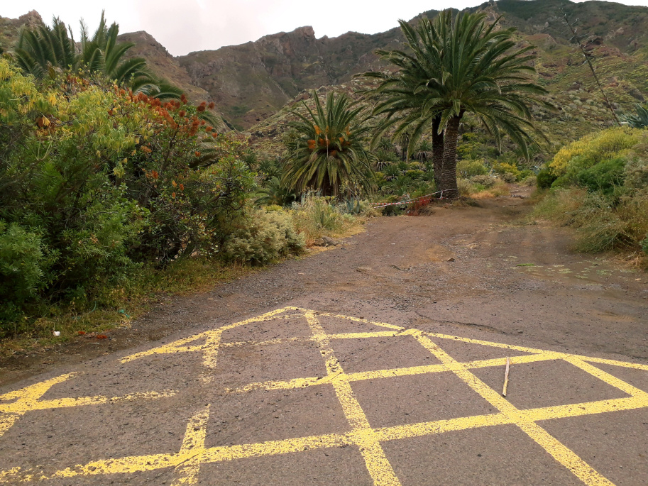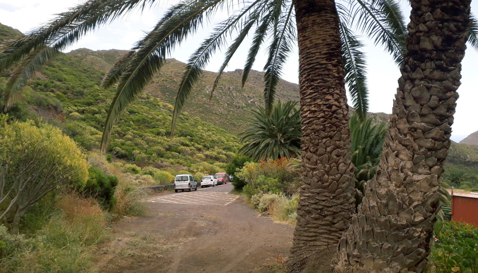 Von San Andrés fährt man in das Valle del Cercado. Im Dorf muss man auf der Straße, die nach Taganana führt, kurz vor der Brücke links abbiegen, dann geht es noch durch ein Wohngebiet und schließlich hinaus ins Tal. Die 4 km lange Straße wird immer schlechter und schmaler, und die Häuser werden immer weniger. Palmen gibt es vorläufig noch keine zu sehen. Erst wenn man in den hintersten Winkel kommt, sieht man einige, und dann werden es immer mehr. Dort wo die Straße endet, kann man das Auto abstellen. Man befindet sich jetzt auf etwa 200 m Meereshöhe.