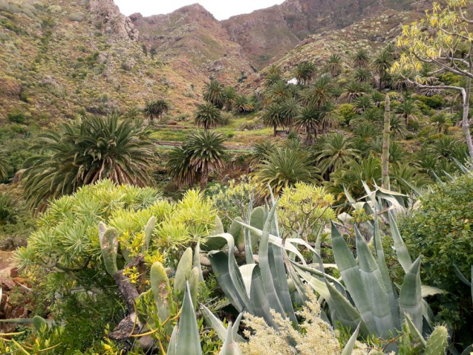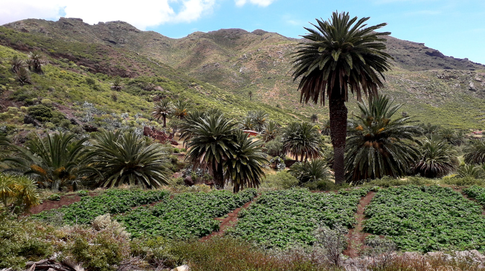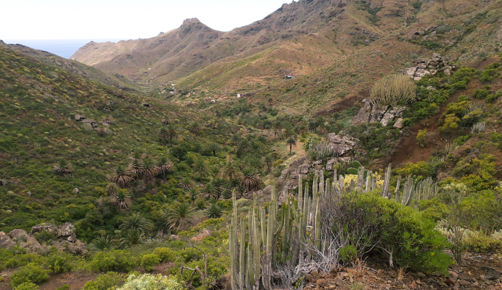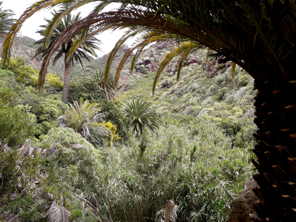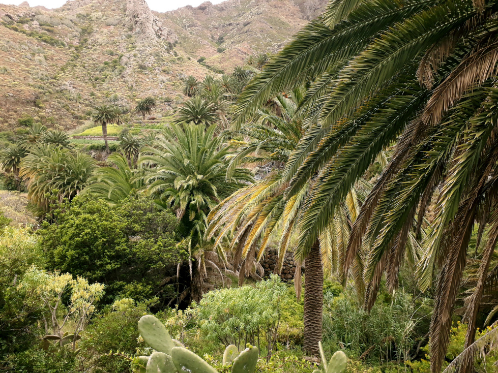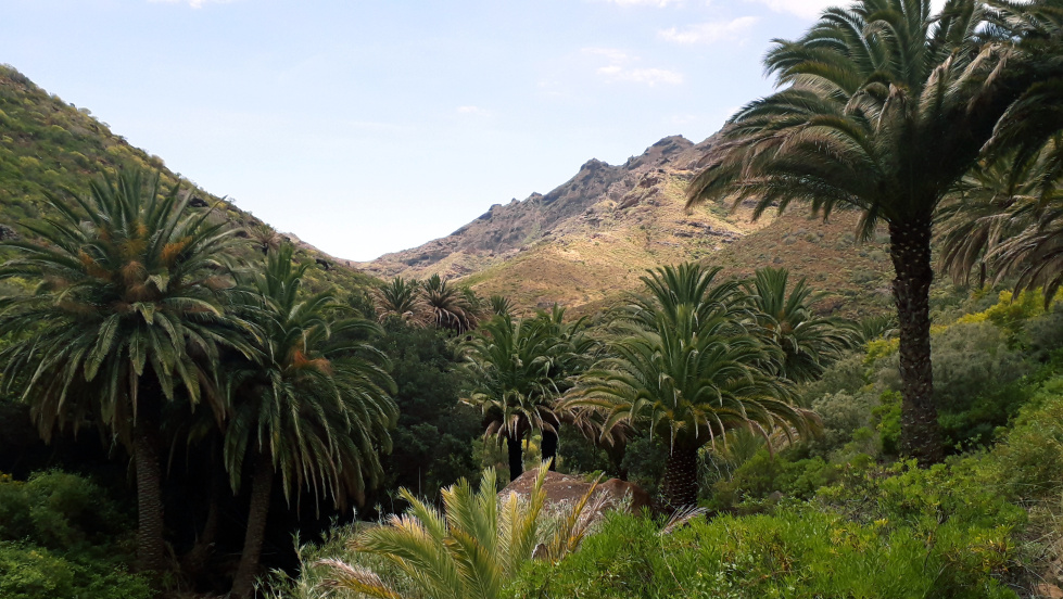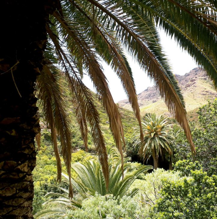 Der schönste Palmenwald Teneriffas liegt versteckt im hintersten Winkel der Anaga-Halbinsel. Auf der sonst eher trockenen Nordseite findet man nicht leicht so einen grünen Winkel. Hier ist ein leichter Spaziergang durch die üppig grüne Natur möglich, oder auch eine kleine Wanderung mit Kletter-Abenteuer.