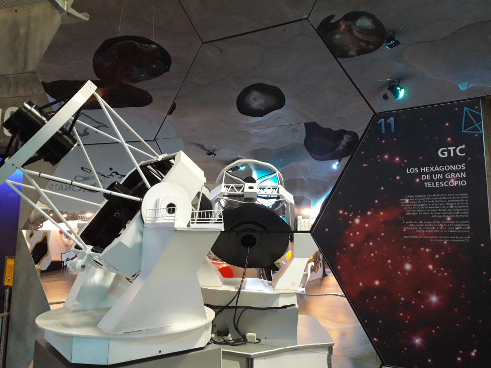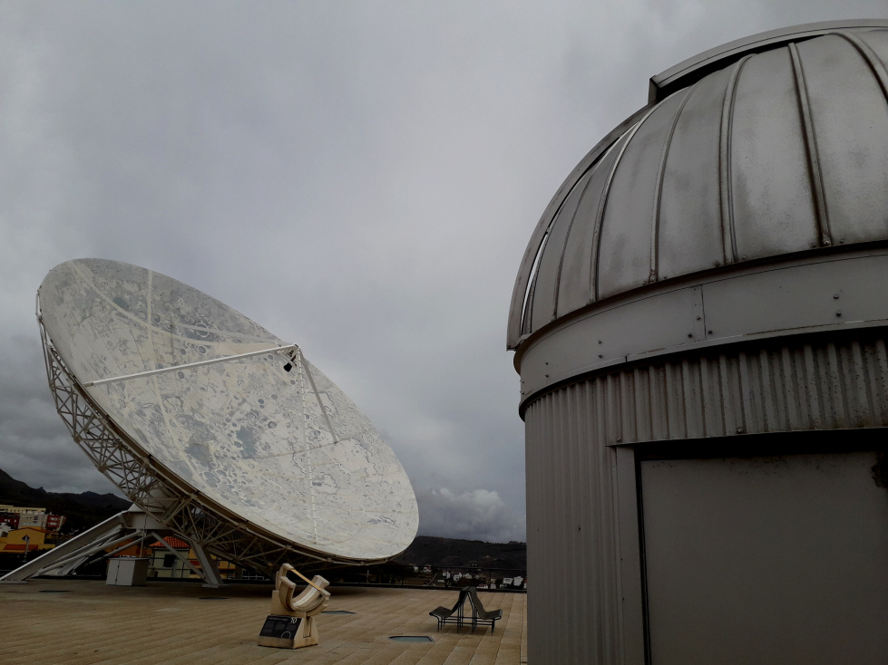 Das Gebäude des Museums wurde von den Architekten Jordi Garcés und Enric Sòria entworfen. Es befindet sich auf einem Grundstück neben dem Hauptsitz der IAC in La Laguna und hat vom Grundriss her die Form eines halben Sterns mit Spitzen. Auf der Terrasse, die als astronomisches Observatorium ausgestattet ist, wird die große Antenne von zwei weiteren astronomischen Instrumenten begleitet, einem kleinen Teleskop und einer Sonnenuhr. Die Koordinaten der „Montes Tenerife“ auf der Mondoberfläche sind auf die große Antenne des Radioteleskops gemalt, das als Wahrzeichen des Museums gilt und von weitem sichtbar ist. Sie hat einen Durchmesser von 18m. Hier gibt es mehr zu Teneriffa und der Mond. Auch auf einer Briefmarkenserie der spanischen Post ist die Antenne erschienen. Sie wurde in Tarragona gebaut und bevor sie nach Teneriffa kam, stand sie 1992 auf der Weltausstellung in Sevilla. Von einem Bildschirm im Museum aus kann man damit Botschaften ins All senden in der Hoffnung, außerirdisches Leben zu finden. Es kam aber bisher noch keine Antwort. Als die riesige Antenne 1993 montiert wurde, hatten manche Menschen sogar Angst, sie könnte die Aufmerksamkeit der Außerirdischen auf Teneriffa lenken.