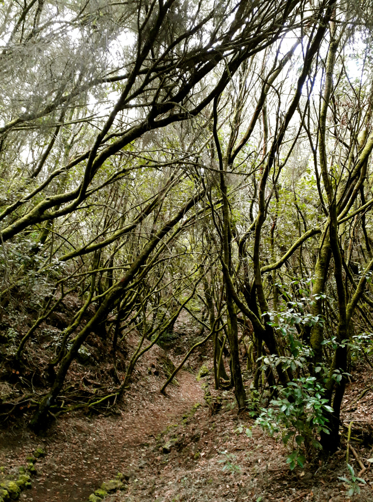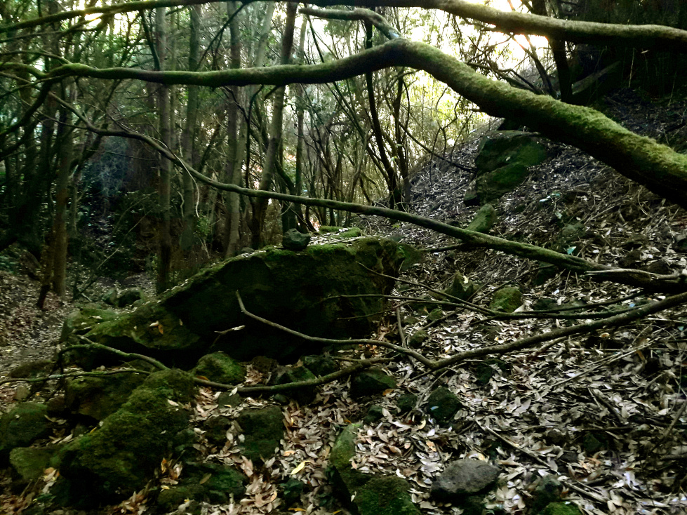 In der Schlucht wächst ein dichter, verzauberter Wald aus Baumheide und Lorbeer, in dem kaum Sonnenlicht bis zum Boden dringt. Immer wieder muss man sich unter umgestürzten Stämmen bücken und über feuchte Felsen klettern. Hier gibt es auch kleine Höhlen, aus denen früher quarzhaltiges Gestein abgebaut wurde, das man zur Herstellung von Glas brauchte. Ähnliche, aber viel größere Höhlen findet man in den Cuevas de Toledo bei Tacoronte, siehe Artikel Märchenwald (I).