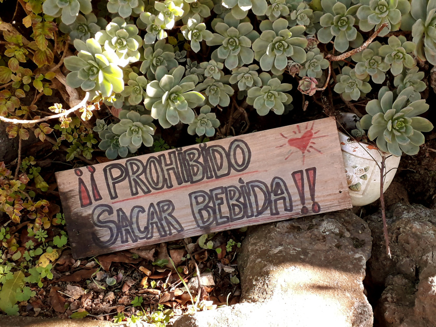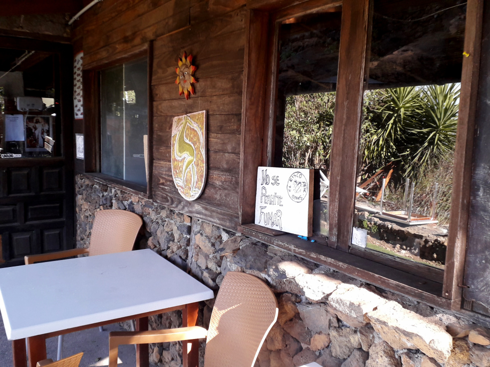 Man überquert die Umgehungsstraße, geht geradeaus weiter, und überquert 100m weiter auch die Dorfstraße, danach auf der Calle Don Corsino Cairós Pérez, sie heißt später Calle La Hoya und ist abschnittsweise etwas steiler. Doch auch dieser Aufstieg wird wieder belohnt, denn nach 500m trifft man auf die kleine Kneipe El Risco mit einer wunderschönen Gartenlaube. Dort könnte man sich ein kleines Vesper und ein Glas Wein gönnen (falls sie geöffnet hat).