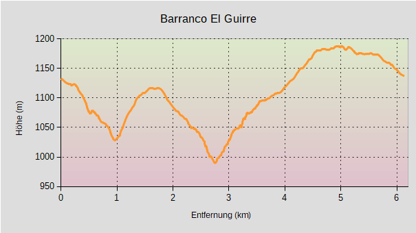 Tiefster Punkt: 990 m, höchster Punkt 1190 m