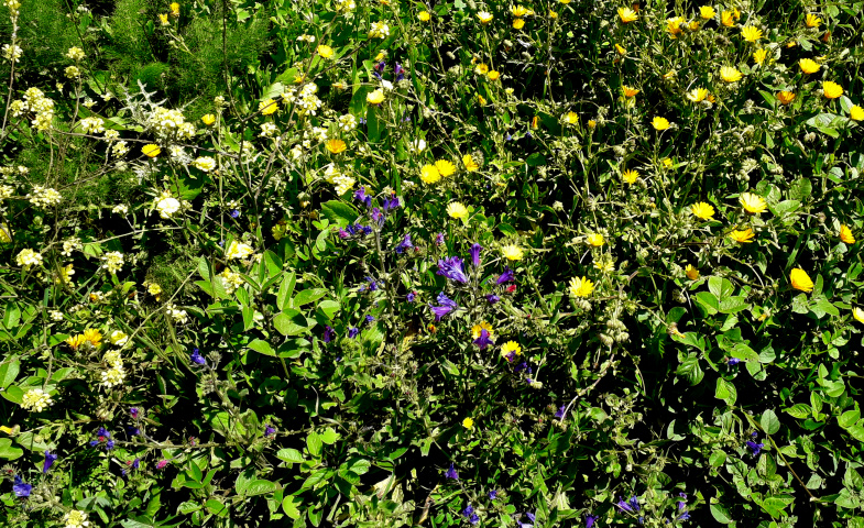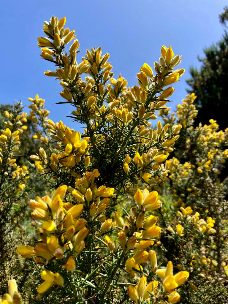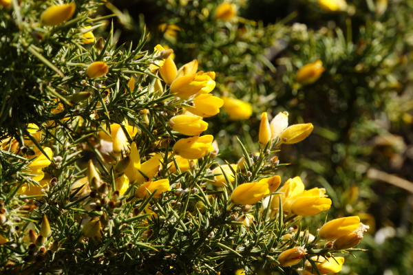 Sie sind eine Freude für die Augen. Der wilde Wermut duftet, Bienen und Hummeln brummen, es ist einfach nur schön. Hier wächst der gelb blühende Stechginster. Diese Pflanze gehört eigentlich nicht hier her. Ihre Samen wurden irgendwann eingeschleppt, und sie hat sich prächtig vermehrt.