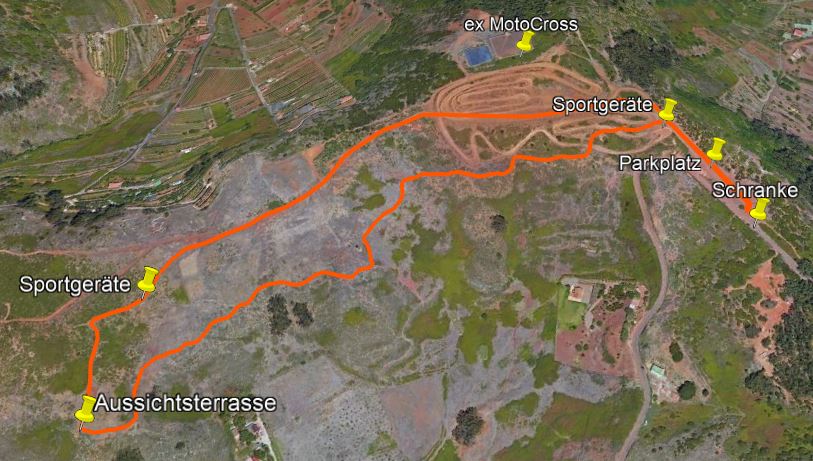 Auf dem Höhenrücken zwischen Mesa Mota und Pulpito wurde ein schöner Weg angelegt, der sich bestens für die ganze Familie eignet. In diesem Gelände befand sich früher eine Motocross-Strecke, dort war die Natur katastrophal zerstört. Die Satellitenaufnahme zeigt den damaligen Zustand.