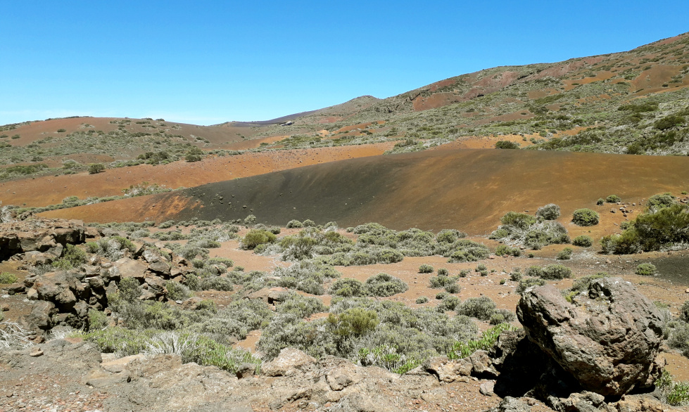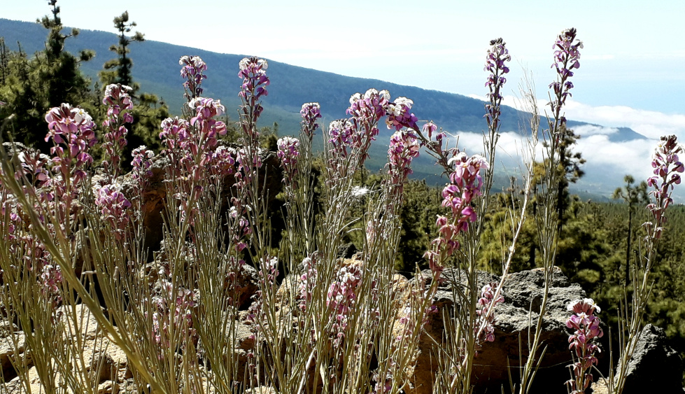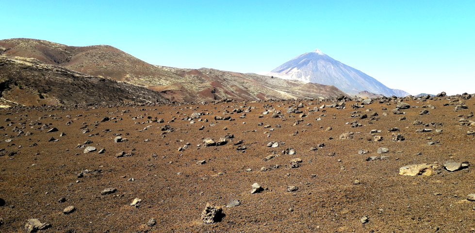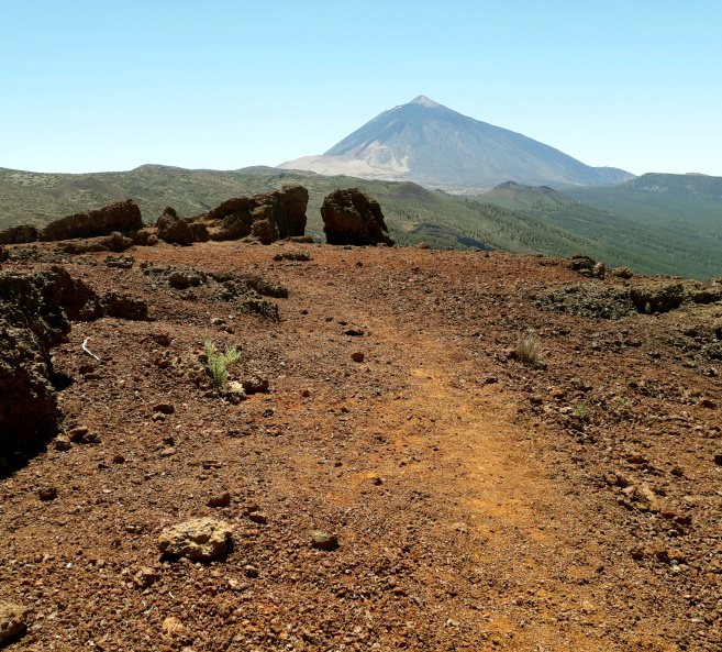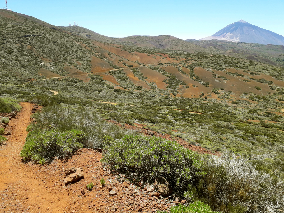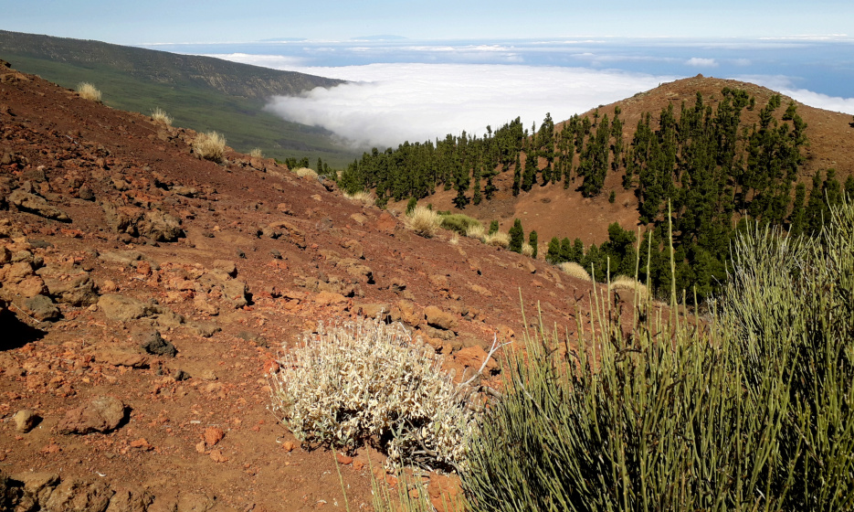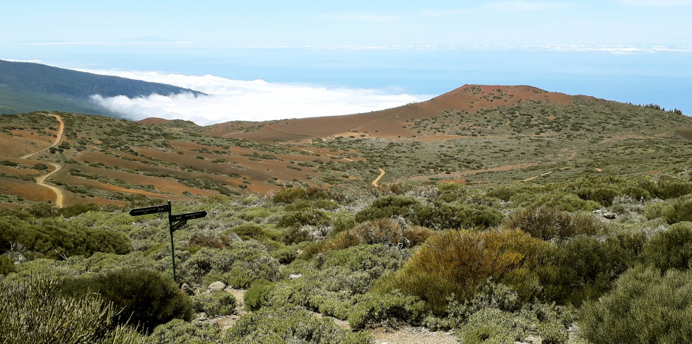 Auf dem kahlen Gipfel mit rotem Lavagestein und ein paar größeren Felsbrocken hat man eine 360º-Rundsicht, nach Westen zum Teide, nach Nordwesten hinunter ins Orotava-Tal und nach Süden zu den Türmen des Izaña-Observatoriums.