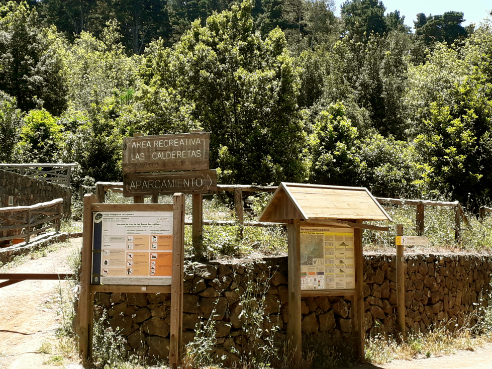 Man könnte sie z.B. direkt am Picknickplatz Las Calderetas beginnen (Varianten siehe unten). Dort gibt es einen großen Parkplatz. Allerdings könnte am Wochenende ganz viel Rummel sein, wenn viele Ausflügler hier herauf kommen. Der Picknickplatz ist sehr weitläufig, es gibt Dutzende von Holztischen, Grillstellen und sogar eine Cafeteria.