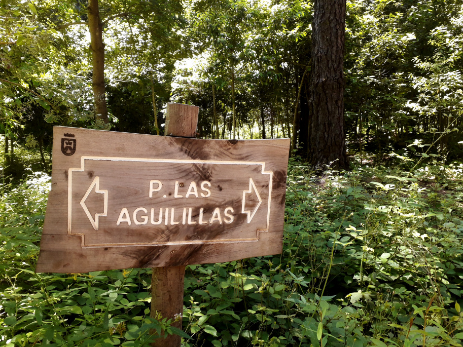 Direkt bei den Schildern mit den Wegbeschreibungen geht man hinauf, an der Cafeteria vorbei und durch den Picknickplatz hindurch, etwa parallel zum Parkplatz. Auch von dort könnte man auf den Weg hinauf gehen. Er steigt leicht an und führt bald in den schattigen Wald hinein. Nach 500m trifft man auf eine Waldpiste und geht nach rechts weiter, sie heißt Pista las Aguilillas. Der Aguililla ist ein Falke, den man überall auf der Insel sehen kann. Er nistet an steilen Felswänden der Schluchten. Man nennt ihn (sie) auch die Königin des kanarischen Himmels.