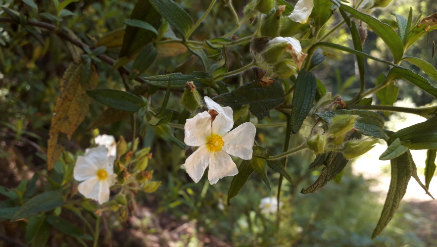 Auf der anderen Seite geht man wieder bergauf zu einer kleinen Straße und nach rechts oben bis zur Hauptstraße. Genau dort, wo diese in den Wald eintaucht, gibt es einen steilen Pfad nach links oben. Er ist gut erkennbar, weil er in der Mitte eine tief ausgewaschene Rinne hat. Das ist zwar der steilste Aufstieg dieser Wanderung, aber zum Glück sind es nur 100m, bis man auf den Camino del Polvo trifft.