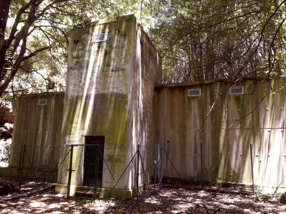 Man kommt an einem Wasserhaus vorbei, das als gespenstischer Betonblock im Märchenwald steht. Kurz danach würde in einem Bogen nach rechts der Camino del Polvo weiter gehen, den man benützt, falls man die unten beschriebene Variante 2 wählt.