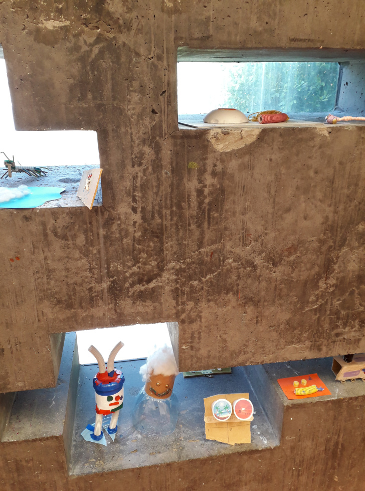 Die Räume sind groß und hoch und weit, sie bieten viel Raum für die Kunst und den Betrachter. Er kann um sie herumgehen oder sich mitten hinein stellen, er wird Teil der Installation. Viele Kunstwerke sind isoliert, wirken fast schon verloren und einsam.